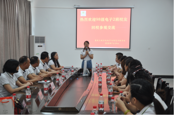 班长代表98电2班全体同学们亲手制作了一件礼物“校徽”送给母校,为二十年后再聚首的同学们留下了一个专属于98电2班的标志。最后,师生们一起齐唱班歌——“团结就是力量”,结束了师生交流会。