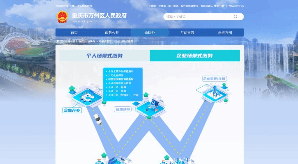 近日,公司智能警务装备研发团队主导和参与的万州区政府场景式政务服务页面建设正式上线。