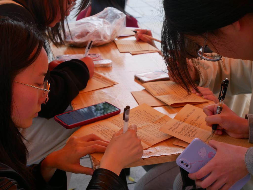 为更好凝聚青春力量,鼓励同学们通过书信的方式表达情感、释放压力,营造良好的学习氛围,我院于4月20日至4月21日在游泳池前广场处和山顶食堂门口广场处举办了“烦恼漂流瓶”书信解忧活动。