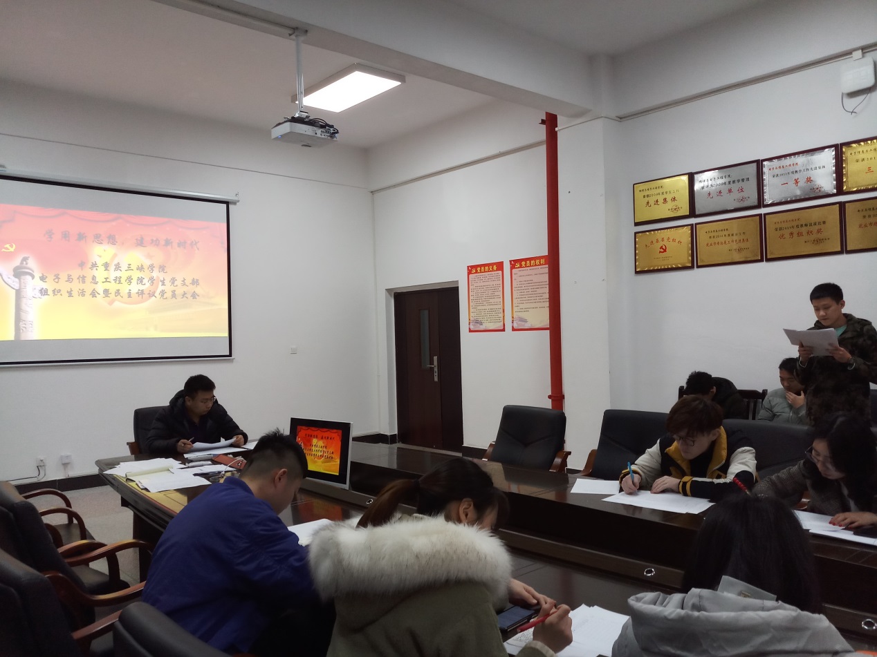 本次会议的主题是:学用新思想、建功新时代。首先,韩老师代表党支部委员会对一年来党支部的工作情况进行述职。述职完毕后,支部每位同志以个人自评和党员互评的形式依次开展了批评和自我批评,大家都指出了自身存在的缺点、不足和需改进的地方。紧接着,开展了支部评议和党员测评,大家对每一位同志的理想信念、政治理论素质、组织纪律、廉洁自律、发挥先锋模范作用、联系服务群众方面进行了公平公正的评价,随后,党员们对党支部委员会的工作、作风进行民主测评,同时向支部班子提出了宝贵的意见建议。