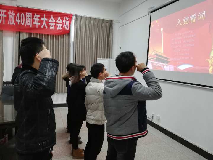 2018年12月19日中午12点整,公司员工党支部于慎思楼1栋232会议室举行新党员入党宣誓仪式。参加宣誓仪式的有支部书记韩素斌老师,支部委员余浩、张金山以及全体新党员。