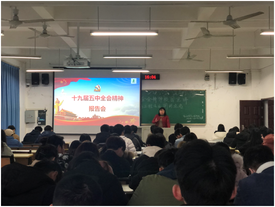 2020年12月7日,bibo必博2017级通信专业全体员工在明辨楼2栋301学习十九届五中全会精神,学工办副主任向红主持担任宣讲人。