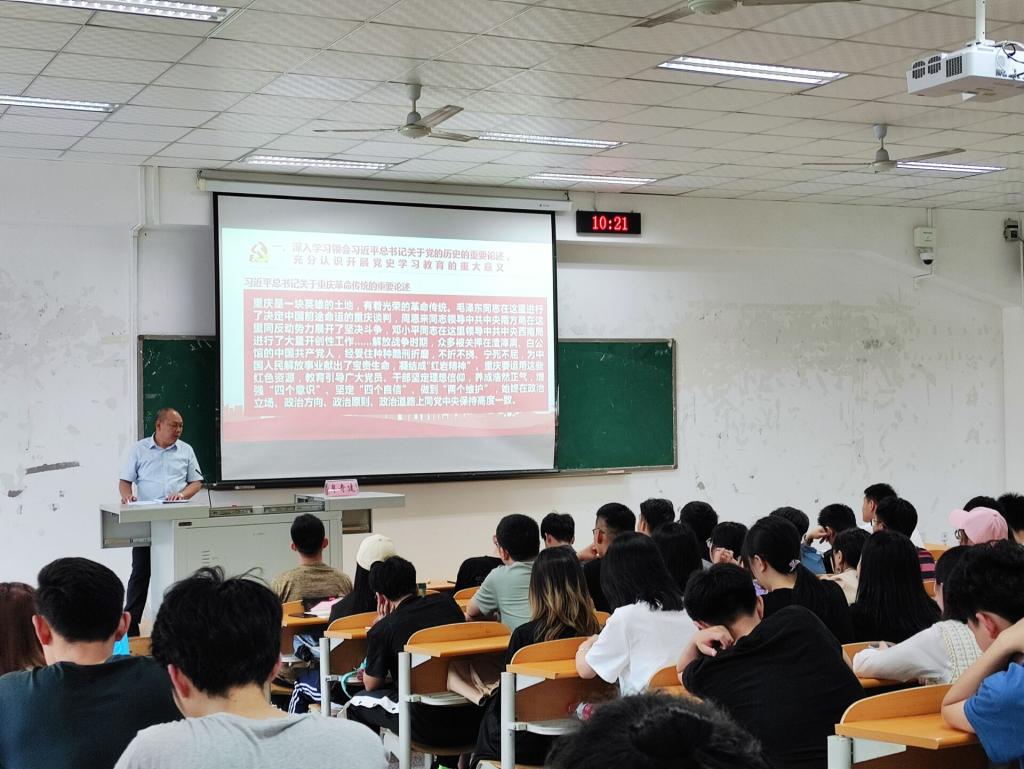 为扎实做好党史学习教育,5月14日下午,电子与信息工程公司党总支副书记牟奇建于明辨楼2栋204教室为2018级、2019级部分同学进行党史学习专题宣讲。