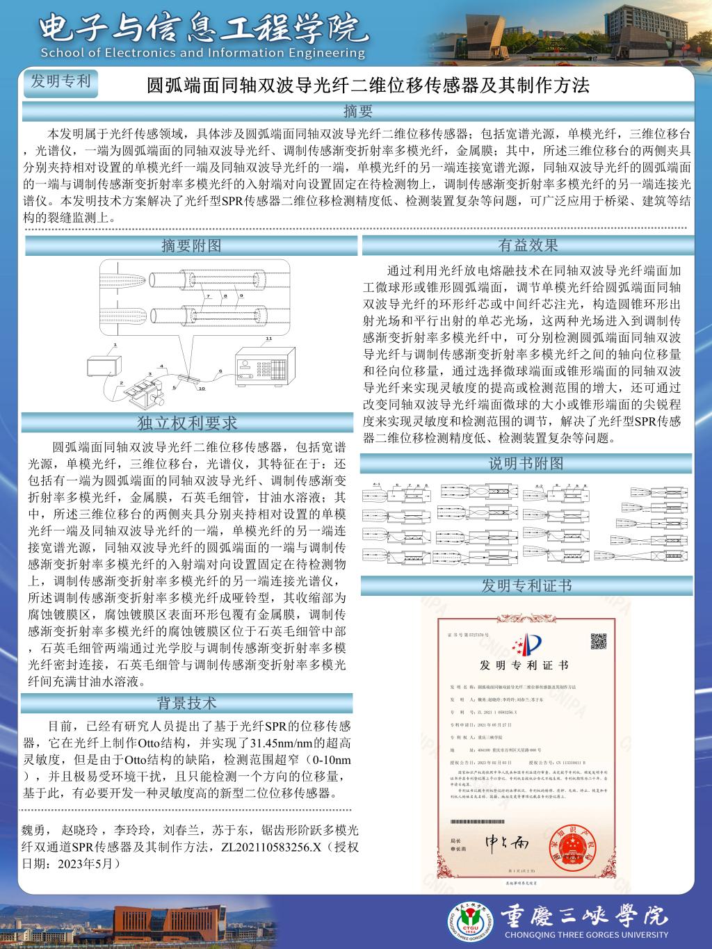 圆弧端面同轴双波导光纤二维位移传感器及其制作方法